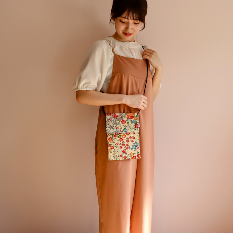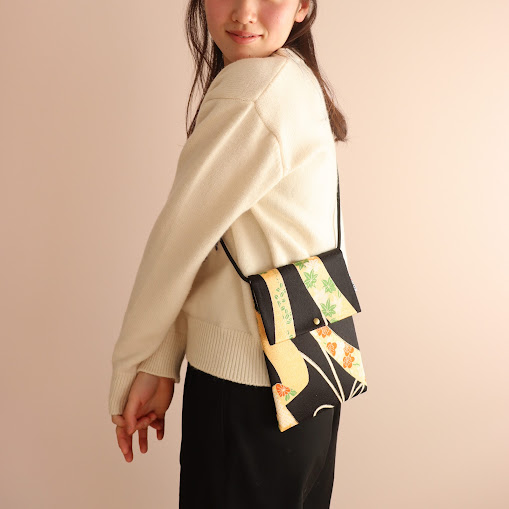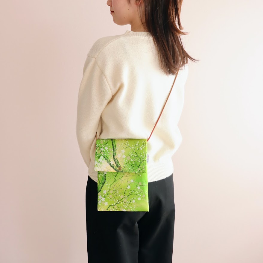 正絹反物で仕立てた、名刺やカードを収納できる小さなサコッシュです。
