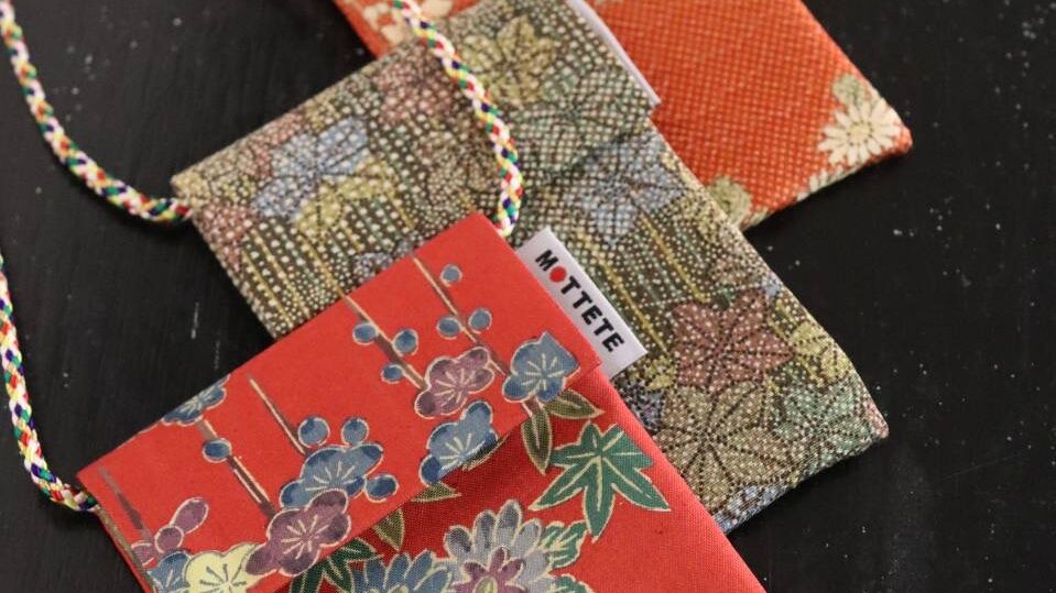 百年の時を経た正絹反物を使い、サコッシュを仕立てる製作体験が行えます。
